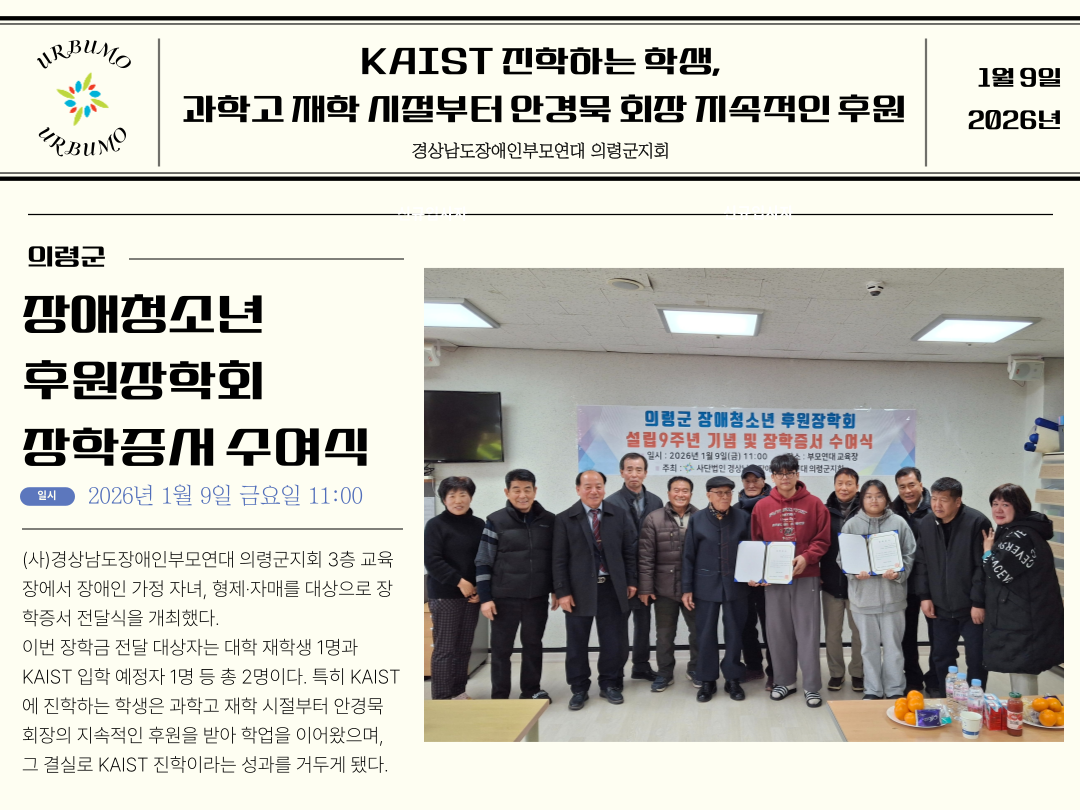 장애청소년 후원 장학회 소제목.